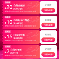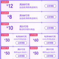 天猫618超级红包,每满200减30,最高618元红包(每天三次,人人可领);