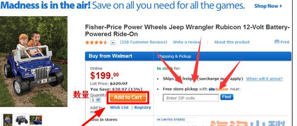 在选择我们的商品之后,点击“Add to Cart”加入购物车,并进入结算页面,进入结算页面之后,将我们在券老大领取到的Walmart优惠码直接粘贴在优惠码一栏,如下图箭头部分为您指出来的,如下图所示:
