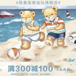 全场单笔实付金额满399送经典泰迪熊一只,先到先得,手慢无。