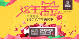 【天猫】3.8手机淘宝生活节 3千万红包抢不停 3.8手机下单更优惠