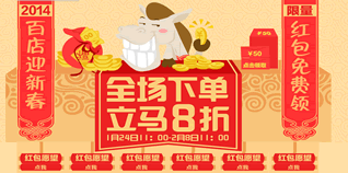 1月24日-2月8日,凡客V+2014新春大促,全场下单立享8折,还有新年马上到欢喜领红包!红包面额为满200减50元红包,凡客V+全场通用(特例品除外)。有需要的朋友可以先领券再购物。