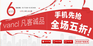 凡客诚品六周年庆——手机抢先店庆大作战,于2013年10月17日0点至18日24点,凡通过凡客诚品手机客户端下单的用户均可享受全场五折的优惠,活动主要包含了羽绒服、衬衣、帆布鞋、卫衣、T恤、时尚女装、内衣、童装、袜品等品类商品,整体优惠力度不错,有兴趣的朋友可以去看看!