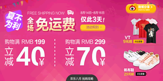 8月14日-8月16日,凡客诚品全场购物免运费,单张订单满199立减40元、满299立减70元。双重优惠下,活动力度非常大。小伙伴们赶紧去囤货吧!买一件商品也包邮哦!