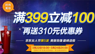 京东商城春雷行动美妆个护专场,活动至3月24日24点,购买京东自营美妆个护产品满399减100再返310元优惠劵(团购和欧珀莱品牌不参与该活动)。