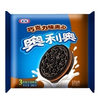 奥利奥巧克力味经典夹心饼干以小麦粉、食用植物油、白砂糖、高麦芽糖粉、麦芽糊精、可可粉、葡萄糖等为原料,采用奥利奥独有的纯正黑巧克力和牛奶夹心的黑白组合,精美花纹、精雕细刻,风行全世界。
