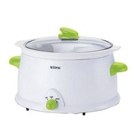 这是一款多功能的养生料理锅,其5L大容量椭圆形陶瓷内锅,可炖煮鸡、鸭、鱼等大体积的食物;可视玻璃的上盖,炖煮过程一目了然。色彩上采用白色搭配芥末绿的设计,大方简洁,小巧可爱。