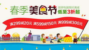 易迅网春季美食节,爆款商品3折起,多款小家电满299-20/599-150/999-300元。更有冰箱、吸油烟机和天然气灶等厨房电器折后再直降300元。