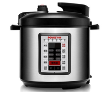 POVOS奔腾5升电脑版电压力锅PPD597(LN593) ,独有六段营养烹饪程序;四维数码显示;重锤式限压阀;三位一体可拆卸内盖;不粘锅黄金标刻度内胆;24小时预约;超高温度108度烹调;五大人性化设计。
