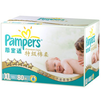 Pampers 帮宝适 特级棉柔婴儿纸尿裤(12kg以上)加大号XL80片,京东商城折扣价149元包邮。同品天猫商城旗舰店售价249.9元,亚马逊XL72片装售价182.26 元,其他B2C商城低202元。