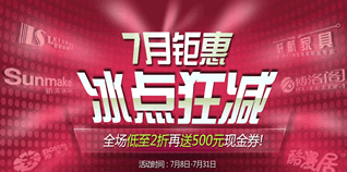 7月8日-31日,当当网7月家具钜惠,全场低至2折,还可免费领满1000减500元现金券,现金券即领即用!现金券领取时间截止至7月15日,使用时间截止至7月31日。