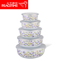 这套保鲜碗采用的铁搪瓷材质制成,铁铸的容器,耐高温的搪瓷珐琅彩表层;厚度强、 耐高温、美观实用,明火、电磁炉、冰箱通用(不可放入微波炉使用);其净重量为670g,密封的塑料盖安全、干净。