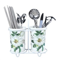 这款陶瓷筷子筒桶身采用的高白瓷,可适用于洗碗机和冰箱;筷架使用的金属烤漆架,有红茶花、白茶花2色选;其筷筒底部沥水孔防霉设计能,有效改变了筷子沾水发霉现象,让厨房用品变得整洁、干爽,是厨房收纳的。