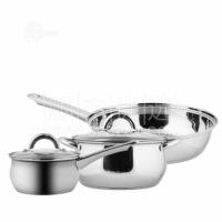 锅具材质选用的优质不锈钢、纯铝、430不锈钢,钢铝钢加厚复合底,受热均匀快捷,节能省时;锅身全弧形流线结构,风格简约大方,手柄符合人体工程力学设计,稳健、兼容并蓄。全套组合餐具可以满足煎、炒、蒸、炖、煮各种烹饪效果,适用用电热炉、煤气灶、陶瓷灶、电磁炉,明火通用。