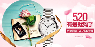 万表网5.20促销惠,全场4.9折(部分商品每满1000减100)!万表网5.20大优惠,全场商品4.9折,部分商品每满1000减100元,更有其他优惠活动。优惠描述: