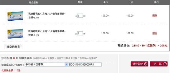 在选择好所要购买的商品之后,结算时会显示“请选择或输入优惠劵”,有两种情况可供选择,如果会员账户中拥有视客眼镜网优惠劵,即可直接进行选择;而如果你所拥有的视客眼镜网优惠劵是外部获得,则要选择“手动输入优惠卷”,将由数字和字母组成的视客眼镜网优惠卷直接复制或输入栏中即可使用。