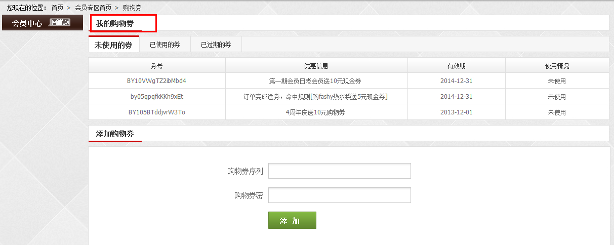 直接发送到用户账户中心的优惠券可以通过登录您的账户,在“会员首页”点击“优惠券”查看你所获得的优惠券明细。