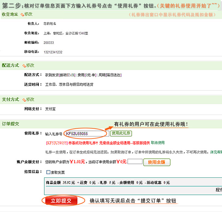 5、特别说明:礼券仅限单品使用,不与组合或其他优惠活动同享。