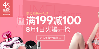聚美4.5周年庆,千余美妆品牌打破底价,全场高满199减100元,参加活动品牌有雅诗兰黛、欧莱雅、倩碧、迪奥等。各品牌优惠力度不一,如雅诗兰黛全场5.1折起,倩碧5.2折起,百雀羚、相宜本草全场满199减100元等。需要购买美妆的朋友可以多看看。