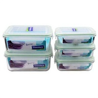 Glasslock三光云彩保鲜盒五件套装GL07,含韩国原装进口钢化耐热玻璃方形系列400ml*3, ,1100ml*2,亚马逊中国特价99元包邮。同款商品,京东商城报价189元,当当网报价109元。价格优惠,感兴趣的朋友可以看看。