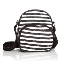 美邦女款休闲间条斜挎小包,黑白条纹简洁有力,富于视觉冲击力的同时不失斯文和俏皮,斜纹帆布纹理粗犷,搭配菱格图案增添了韵律感。双层包袋设计实用性更强,柔和的线条带出了女性特有的俏皮和可爱,帆布重量轻盈,包身自重较轻,携带方便无负担。搭配休闲或运动装扮都能突显您小女生的浪漫情怀和俏皮可爱。