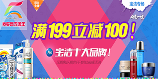 我买网5周年庆宝洁专场,十大品牌满199减100。活动包括洗发护发、口腔清洁、身体清洁、面部护理/洁面产品、女士用品、男士用品以及家用清洁专区。参与品牌含潘婷、沙宣、护舒宝、吉列、汰渍、玉兰油、碧浪、佳洁士等一众知名洗护品牌。优惠多多,省到让你大吃一惊!