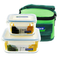 Glasslock三光云彩GL2-01B钢化耐热玻璃保鲜盒2件套带保温包,不含任何有毒有害物质,是对人体无害的健康环保用品,不管长期加热,还是冷冻,永远不会变形。保鲜盒中不会残留异味,耐腐蚀性强,更易清洗,食物颜色不会残留在保鲜盒上。