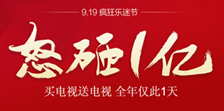 乐视网919疯狂乐迷节,怒砸1亿,买电视送电视。活动当天,100000台超级电视,免预约开放购买,全场免邮、9.9元、现金券三重壕礼疯狂送、配件全场5折起,用券折上折、乐视全生态,2.5折起、9秒内怒砸旧电视,抢5000万现金券,更有神秘夜场等着你!活动详情如下: