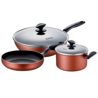 Supor苏泊尔炫彩三件套(炒锅、煎锅、汤锅)T1127T,锅身内表面采用高级不粘材料,不粘不焦易清洁;外表面彩色不粘材料,不粘易清洁,装点时尚厨房;电木手柄,握感舒适;电磁炉不通用。