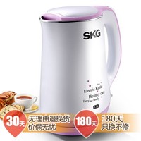SKG食品级不锈钢电热水壶SKG8002,双层设计,隔热防烫,优质温控器,百分之百真沸腾,静音快速煮水,1.7L大容量,满足全家饮水需求,可收纳电源线,易收藏。