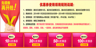 苏宁易购家纺暖冬大钜惠,家纺、空调优惠券免费领,面额分别为满99减10元、满299减30元、满499减50元、满999减100元。苏宁易购网站和移动端都可使用此券,优惠券可用于购买家纺类和空调类(指定商品),用券时间截止至11月30日。