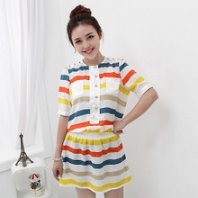 这款连衣裙,无论是质量和做工都非常的棒,版型优美,年轻、个性、甜美的颜色,独特的设计让衣服与众不同,纽扣装饰,条纹撞色设计都是其亮点所在,潮流单品、强力推荐!