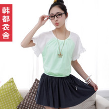 韩版GJ1499短袖拼接假两件连衣裙,韩都衣舍37元,在夏装清仓专区购任意2件免邮。同款,天猫178元,1号店89元。