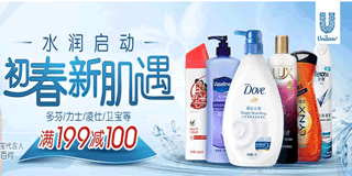 亚马逊水润启动活动,新春新肌遇,联合利华身体护理专场,满199减100元!活动时间为2015.3.9至2015.3.20,活动内容:在本活动期间,只要购买本页面内亚马逊自营的任意身体护理商品即可享受满199元立减100元的优惠。本次活动仅限亚马逊指定的自营商品,第三方卖家,镇店之宝,Z不参与活动。优惠不累计,不和其他优惠促销同时使用。活动品牌包括多芬、力士、凌仕、卫宝等等。家里需要囤备沐浴露的小伙伴可以趁机采购一些!