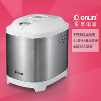 Donlim东菱家用智能不锈钢面包机BM-1215,不锈钢拉丝外壳,黄金纳米涂层内胆,单搅拌叶片、回形发热管设置在机身的1/3处,全方位均衡烘烤,和面、发酵、烘烤一钮操作,可以解决定时和选择各项菜单功能!