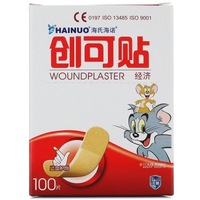 海诺创可贴经济无纺布100片盒装*2,该产品由医用胶带、吸水垫、隔离膜、包装纸组成,其中医用胶带是以织物或薄膜为背衬,上附高分子医用胶粘剂组成,背衬可以印有图案,主要用于浅表性皮肤的小面积小创伤、擦伤等患处 。