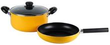 张小泉这款2件套,包含24cm的煎锅和汤锅,锅内为不粘涂层,外壁底部为导磁片,电磁炉煤气灶两用型,蜂窝锅底既避免粘底又能节省油脂,健康美味。