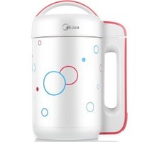 Midea美的无网旋磨智能保温豆浆机WDE12F43,采用宽幅变频电机,1500转搅拌,结合360度加热,可以充分煮沸防止夹生;15度S型倾角刀头,刀头旋转一次可搅打食物10次;专利搅流筋设计,可以进行超微旋磨;插座处有防水盖板。