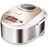Midea美的智能不锈钢电饭煲FC4019,不锈钢拉丝外观和可视天窗,4L容量,高导热黄金蜂窝内胆,三维立体加热,7大烹饪功能4种口感,24小时预约。