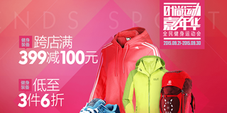 京东商城全民健身运动会,运动服装促销活动,跨店铺满399减100,3件6折!京东商城有一个全民健身运动会促销活动,全场运动鞋服、健身装备跨店铺满减,满399元减100元。户外运动全场低至3件6折。关键是,还可以叠加一张满299减60的优惠券。