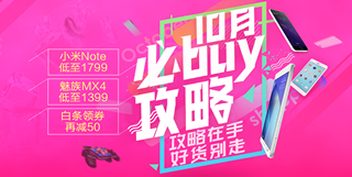 京东商城10月必buy攻略,手机活动专场,爆款直降,白条领券再减50元!京东商城现在正在进行一场关于手机的专题活动,手机没有满减,都是爆款直接优惠。小编撸了一下,价格什么的都还不错。比如,小米NOTE低至1799元、魅族MX4低至1399元,如果打京东白条的话还可以领券再减50元。