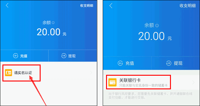 4.注册成功后进行“实名认证”和“关联银行卡”