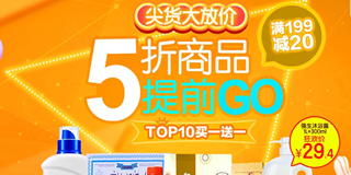 1号店双十一尖货大放价,5折提前购,满199减20元,TOP10买一送一!11.11的硝烟越来越近了,一号店也新促销了,不等双十一,5折商品,提前GO,需要的朋友可以看看。活动主要有买一送一,部分商品还可参加整点活动,比如10:00可以一元派克笔,13:00是花王尿不湿等;底下也有很多子活动,包括买一送一、领券不能停等;参与的种类和品牌也是非常丰富,需要的朋友不要错过了!