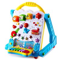 AUBY澳贝启智系列电子多功能学习桌463439DS,有多种形态可以选,学习桌形、学步车形、写字板形、电子琴形等,可以根据孩子的大小来选择相应的玩耍形式。拥有语音功能,12种不同玩法,电子琴还可以拆卸来单独玩,一桌多用。
