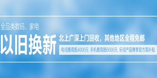乐视网全品类数码、家电以旧换新,全程免邮,高可抵6000元现金!乐视商城全品类数码、家电产品均可以旧换新,电视高可抵4000元,手机高抵6000元,乐视产品尊享官方高补贴,快来看看你的旧机还值多少钱吧!回收品类:大家电、手机、平板电脑、笔记本、相机镜头。(手机平板、笔记本电脑、相机等不论国行、港行均可回收报价)