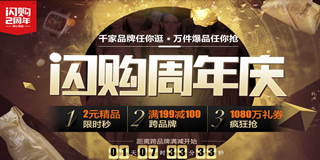 京东商城闪购两周年庆,领白条券/满199-100,低至5折!1月7日是京东商城闪购频道周年庆的日子,活动预告页面为大家放出了。 首页目前有白条99-5,199-10,1000-50的优惠券,还可领取店铺专享的满减东券,比如彪马旗舰店50-30等。而让人心动的还是7日开始的跨店铺满减活动,满减力度分别是199-100、299-100和499-100,跨店铺满减活动,参加活动的品牌就比较多了,比如彪马、匡威、安踏、达芙妮等等,赶紧先收藏活动吧。