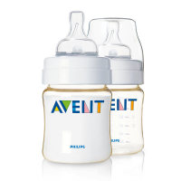 新安怡AVENT四安士对装PES奶瓶SCF660/27,采用的是PES材质,含有2个125ml奶瓶,瓶身造型宽大稳固,曲线易于握持,瓶颈宽大便于清洗及方便冲泡奶粉。