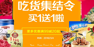 1号店吃货集结令,零食冲锋日,买1送1/满99-20、99-50/第二件6折!目前1号店有一个零食冲锋日活动,优惠力度为:买1送1、满99减20、99减50、第二件6折。参与活动的有:饼干糕点、坚果炒货、膨化零嘴、糖果巧克力、肉干肉铺果脯蜜饯、活色生鲜等等。本活动仅限今天,优惠力度还是不错的,又有许多大牌参与,吃货们可以关注一下!