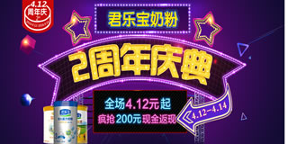 君乐宝412周年庆盛会来袭,全场4.12元起,疯抢200元现金返现,还能满额抽奖!君乐宝周年庆来了!真心想告诉你点啥?一年仅有一次的生日大PARTY,约吗?
