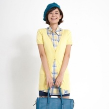 这款AMPM女加长版短袖毛织开衫货号为617524,款式为薄款短袖外套,适合春秋季节穿着。共有5款颜色可选:浅黄、灰色、绿色、黑紫、浅红水红可选。