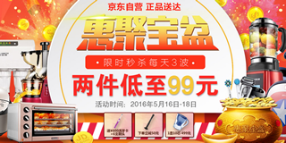 京东商城小家电促销专场,2件99元+1元超级!京东商城现在正在进行自营小家电惠聚宝盆促销专场,力度为2件低至99元,包括家用小电器,厨电等,还有每天3波(10点、18点、24点)限时价,页面内还有白条满199-5/3000-50优惠券,6期免息以及每日限量的12期免息,优惠力度还是不错的!有需求的可以去看下。